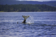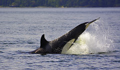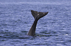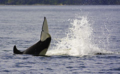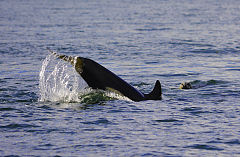 a killer whale is diving under