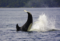 killer whales are jumping on the surface